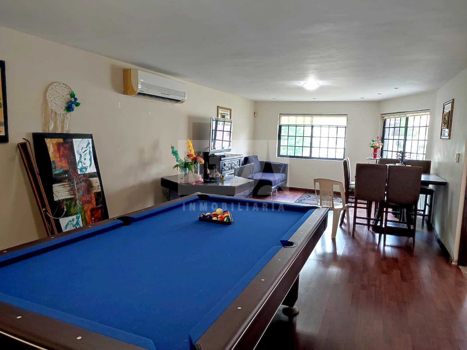 Casa en venta en excelente ubicacion, cuenta con recibidor, sala, antecomedor, comedor, cuarto de servicio con medio baño, bodega grande con medio baño, bodega pequeña, patio trasero muy amplio, área de lavado, cochera con tres autos. Cocina con gabinetes y campana extractora, sin estufa, ni refrigerador.