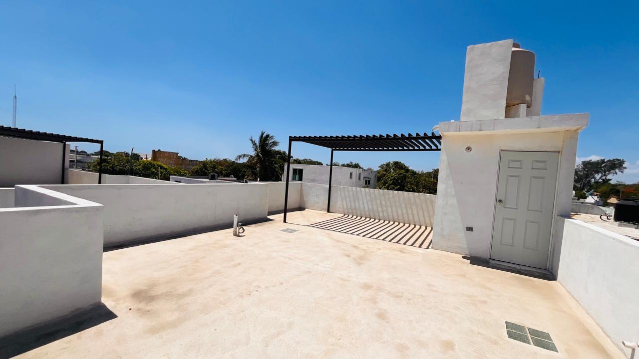 Casa en privada con tres recamaras (la principal con baño vestidor) y dos recamaras comparten baño, amplio rooftop perfecto para eventos o parrilladas, reuniones sociales o simplemente relajación, acabados de primera calidad que reflejan estilo y buen gusto y comodidad.