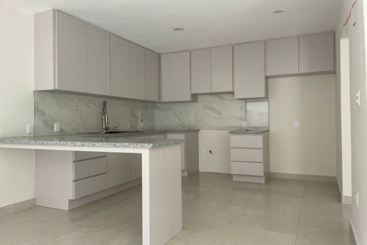 En planta baja cuenta con cochera semi techada para dos autos, pasillo de servicio que comunica el frente de la casa con el patio trasero, Recibidor con doble altura lo cual genera amplitud al entrar a la casa, área de Lavandería, Cocina Integral con acabados de primera, sala