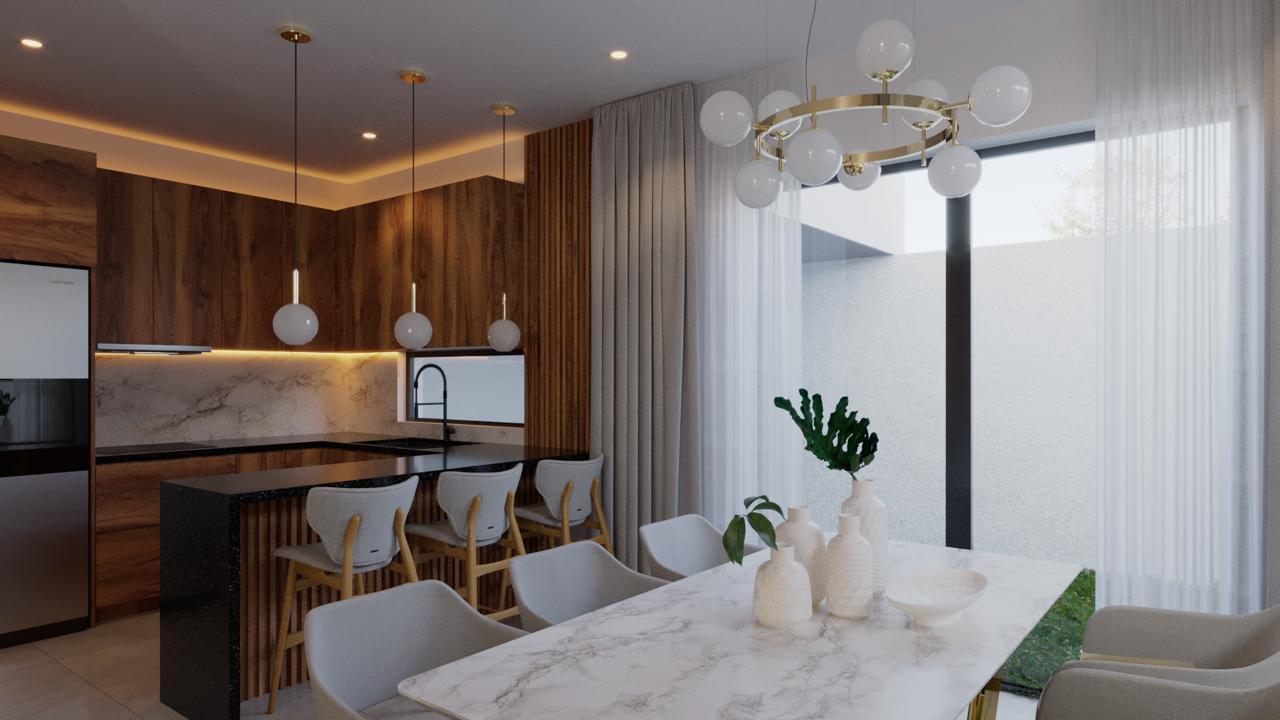 En preventa, cuatro amplias casas en interior. Con paso de servidumbre, estas propiedades cuentan con tres recámaras, la principal con baño y vestidor. Las otras dos con clósets y baño. Cochera para dos vehículos.