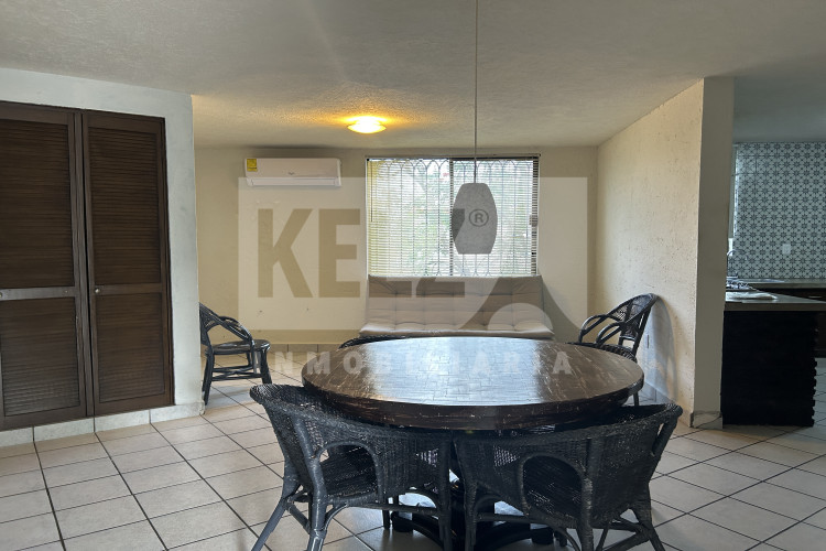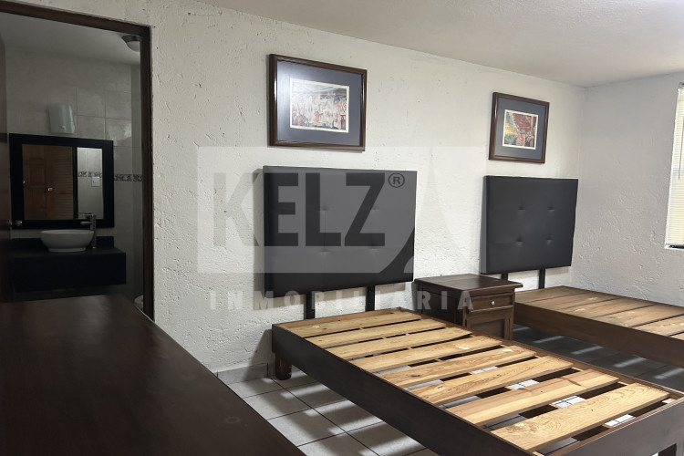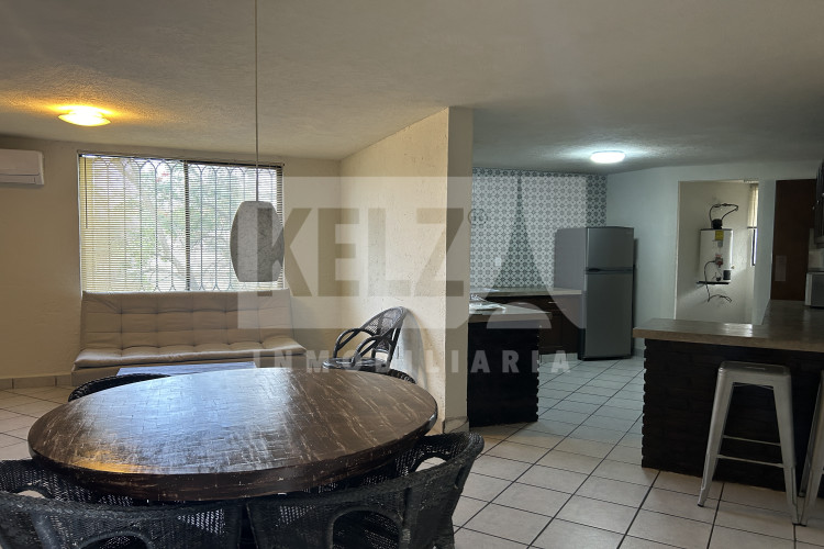 Departamento planta baja con 2 recamaras completas cada una con su baño, cocina con barra amplia, sala, área de lavado y cochera para 1 auto. Semi amueblado con refrigerador, lavadora, doble sala. *Dos departamentos disponibles, checar disponibilidad antes de hacer la cita.