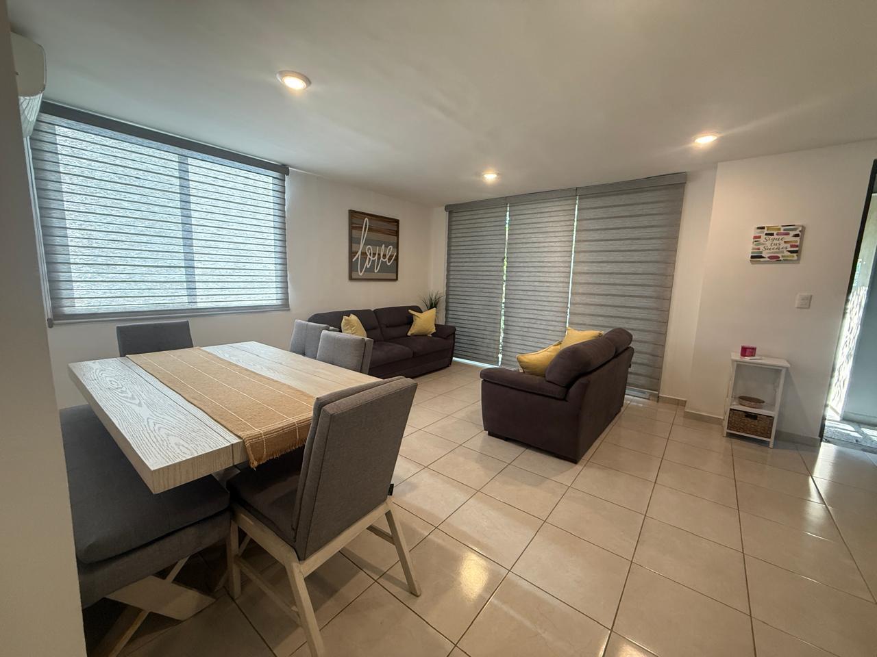 Amplio departamento de tres recámaras en renta, totalmente amueblado. Dos recámaras con aire acondicionado, camas matrimoniales. Una tercera recámara con cama King Size. Aire acondicionado tambén en sala -comedor. Cuenta con lavadora y secadora, portón eléctrico y dos cajones de estacionamiento. Elevador disponible. Muy fácil acceso a una cuadra de Avenida San Pedro y muy cerca de Avenida Hidalgo. Cuota de mantenimiento de $1,100 ya incluida en la renta. NO MASCOTAS