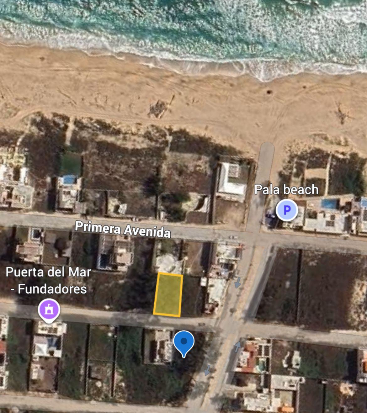 285 m2 de superficie en el Fraccionamiento Fundadores, 15 m de frente por 19 m de fondo; a unos metros de la calle principal de ingreso al fraccionamiento y a unos metros de la playa, ideal para proyecto redicencial.