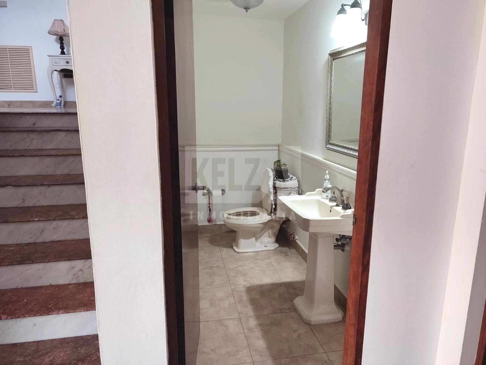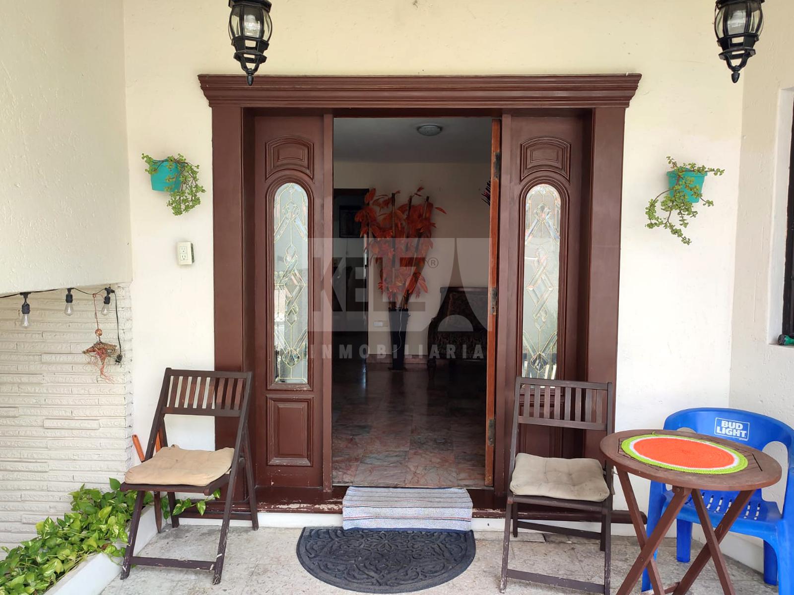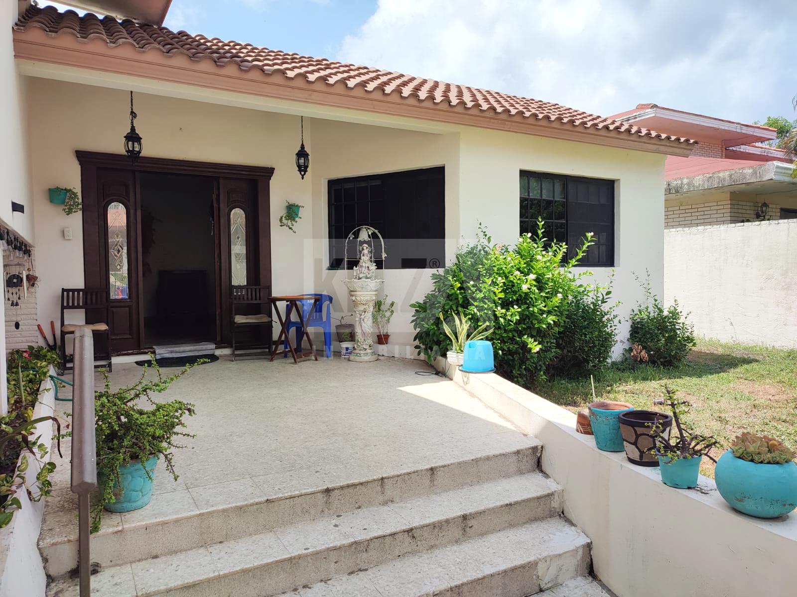 Casa en venta en excelente ubicacion, cuenta con recibidor, sala, antecomedor, comedor, cuarto de servicio con medio baño, bodega grande con medio baño, bodega pequeña, patio trasero muy amplio, área de lavado, cochera con tres autos. Cocina con gabinetes y campana extractora, sin estufa, ni refrigerador.