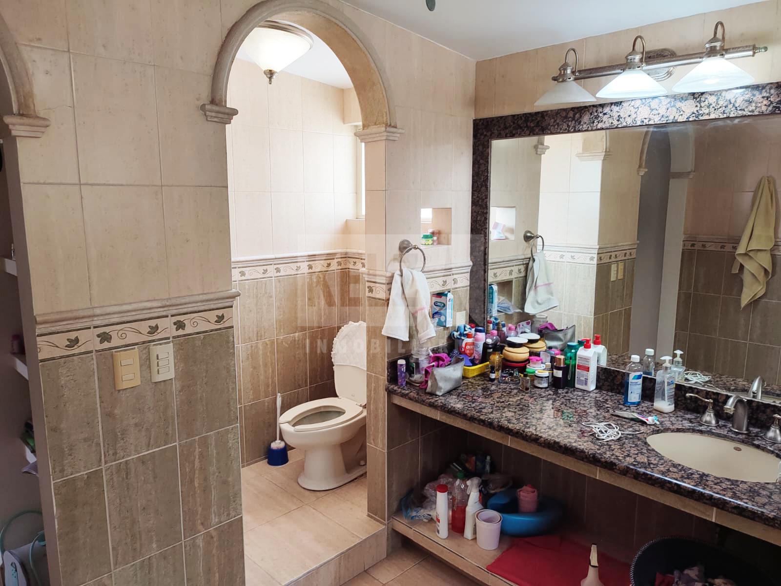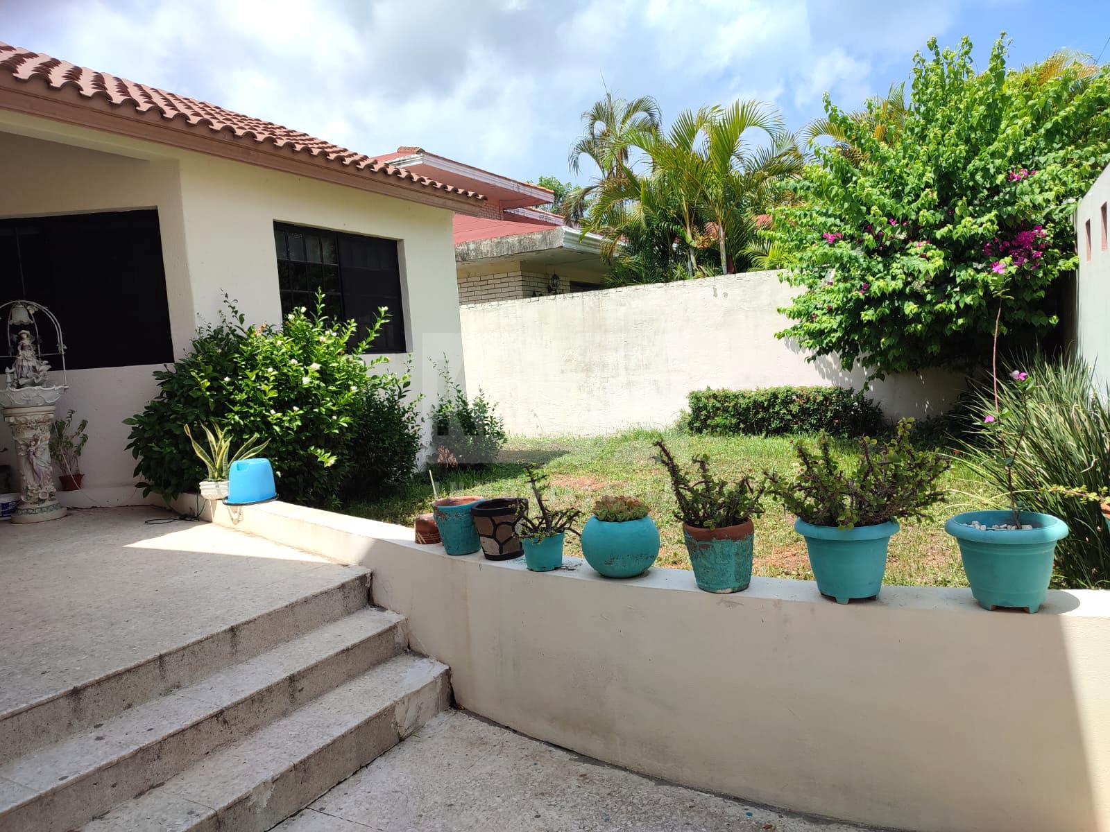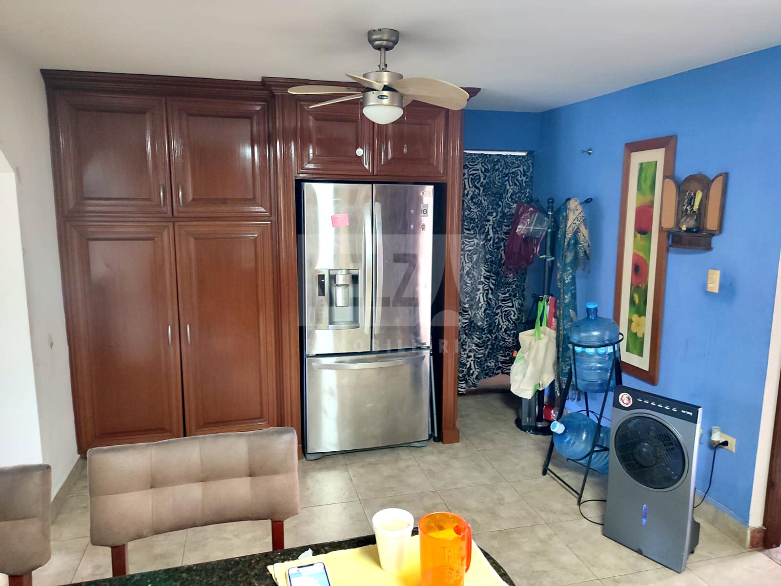 Casa en venta en excelente ubicacion, cuenta con recibidor, sala, antecomedor, comedor, cuarto de servicio con medio baño, bodega grande con medio baño, bodega pequeña, patio trasero muy amplio, área de lavado, cochera con tres autos. Cocina con gabinetes y campana extractora, sin estufa, ni refrigerador.