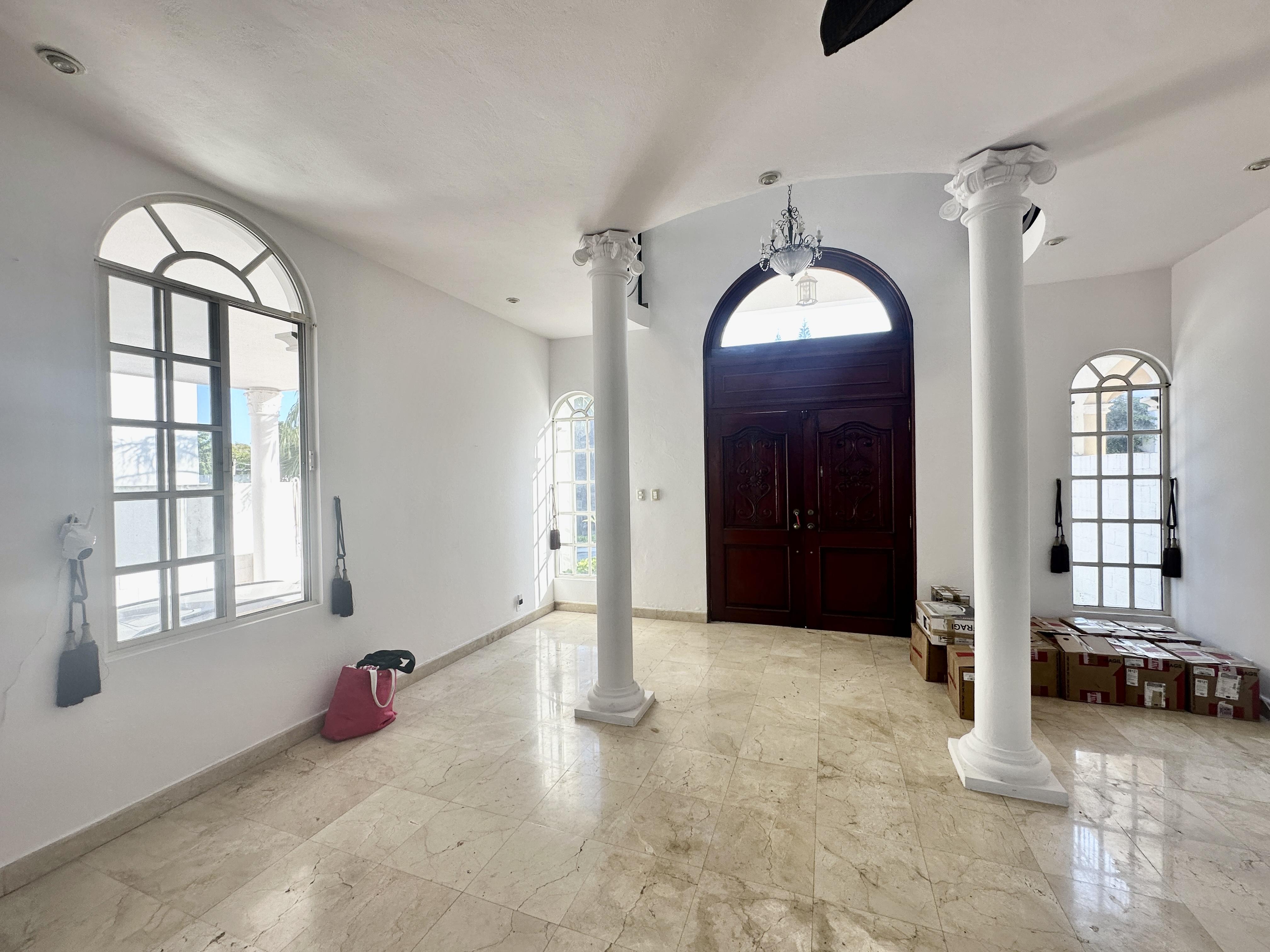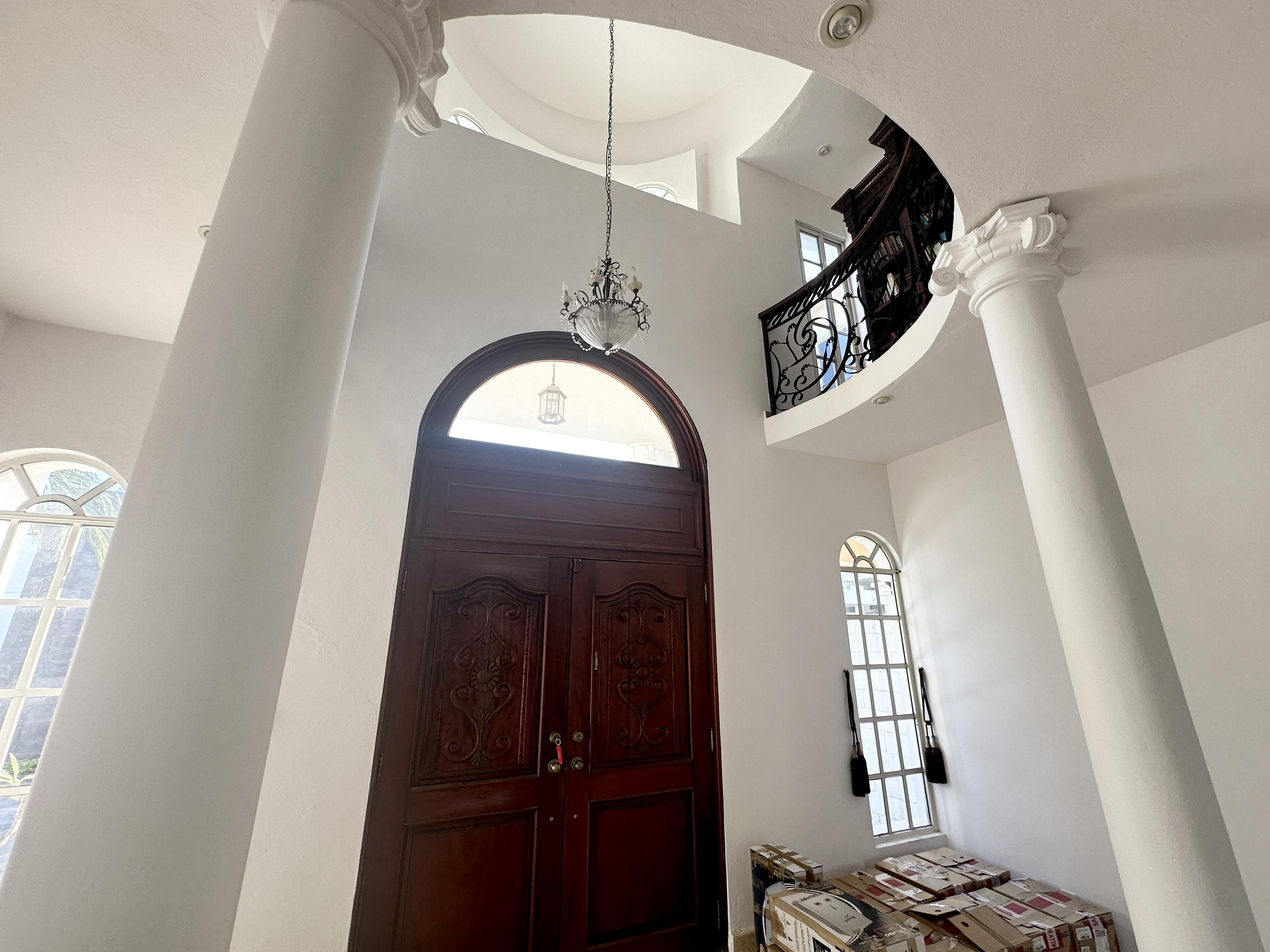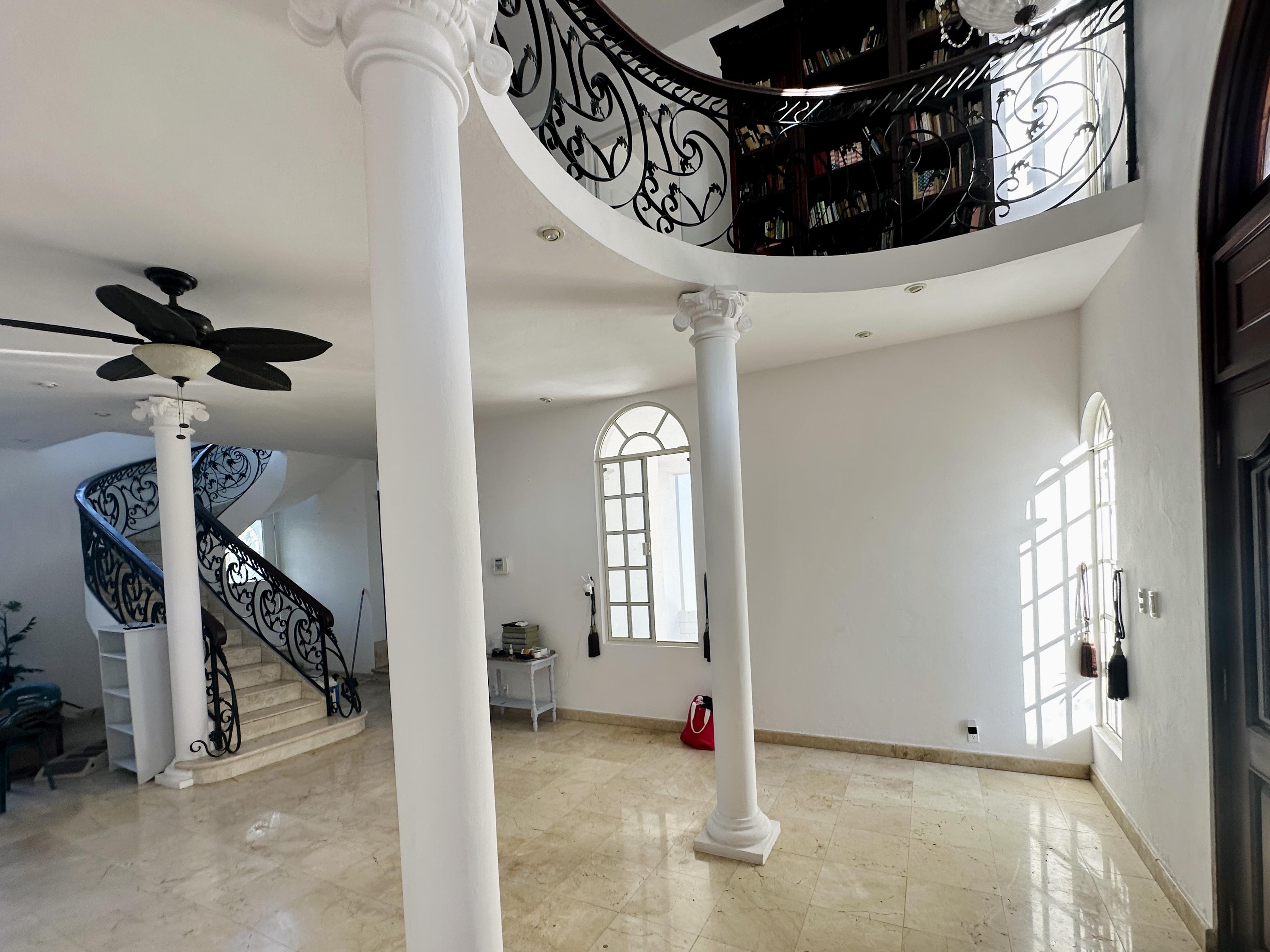 Espectacular residencia en fraccionamiento privado con vigilancia 24/7 estilo neoclasico, piso de mármol español y madera de cedro consta: cochera para cuatro autos, sala comedor, cocina, recibidor de doble altura, medio baño y un amplio patio. Planta alta tres recamaras con baño vestidor c/u, una con balcon se quedan los minisplits inverter.