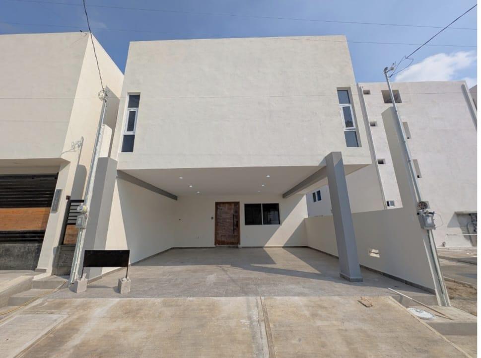 Casas nuevas a solo 5 minutos de la Ave. Mty pasa por todos los creditos, cuenta con sala-comedor, bonita cocina, medio baño, area de servicio y cochera techada para dos autos, En planta alta dos recamaras que comparten baño y la recámara principal con closet y baño completo. En la azotea hay una gran terraza descubierta con asador, medio baño y el cuarto de lavado y planchado. (Casa ubicada al frente).