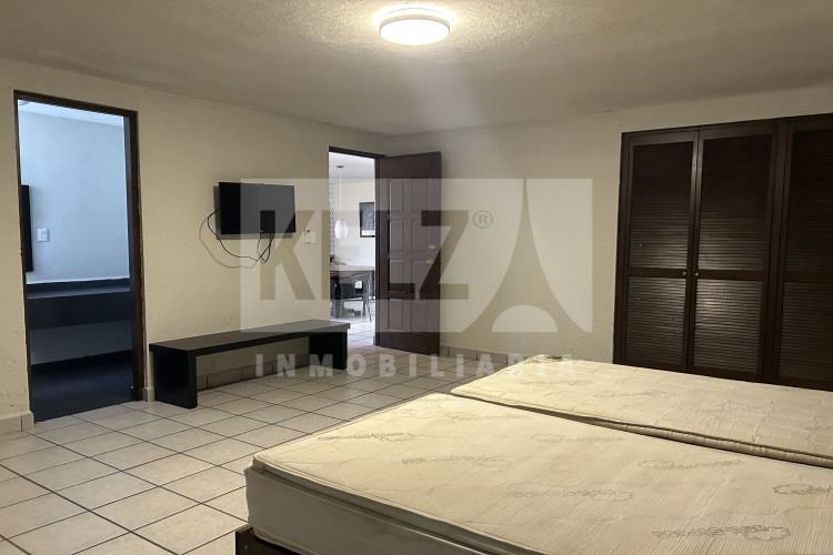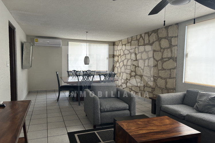 Departamento planta baja con 2 recamaras completas cada una con su baño, cocina con barra amplia, sala, área de lavado y cochera para 1 auto. Semi amueblado con refrigerador, lavadora, doble sala. *Dos departamentos disponibles, checar disponibilidad antes de hacer la cita.