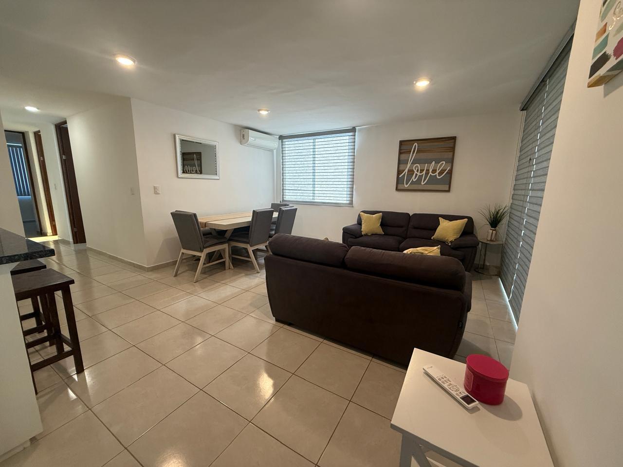 Amplio departamento de tres recámaras en renta, totalmente amueblado. Dos recámaras con aire acondicionado, camas matrimoniales. Una tercera recámara con cama King Size. Aire acondicionado tambén en sala -comedor. Cuenta con lavadora y secadora, portón eléctrico y dos cajones de estacionamiento. Elevador disponible. Muy fácil acceso a una cuadra de Avenida San Pedro y muy cerca de Avenida Hidalgo. Cuota de mantenimiento de $1,100 ya incluida en la renta. NO MASCOTAS